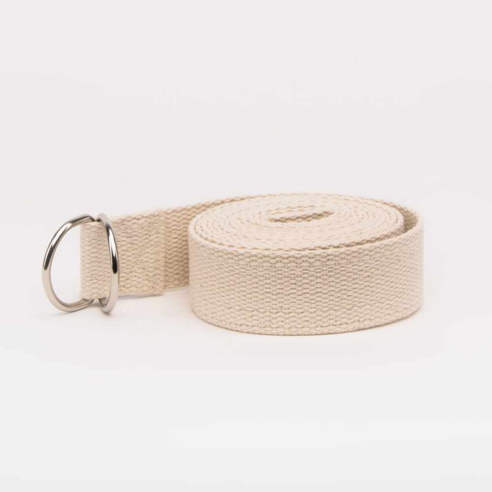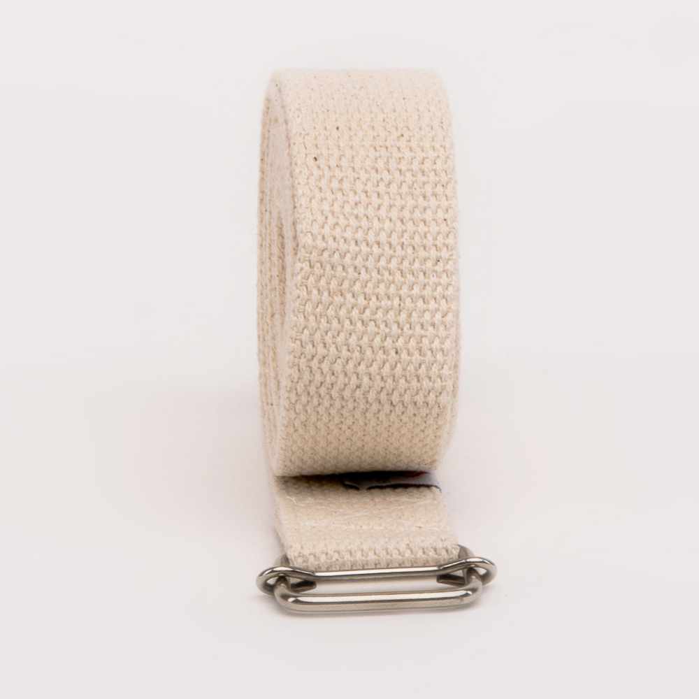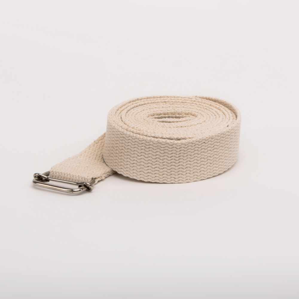 El material del cinto es el algodón y es muy resistente, diseñado y pensado para ayudar al practicante de yoga en un sin número de posturas. Es usado tanto para alinear, compactar, activar, elevar, girar, asegurar, cerrar flexionar, traccionar, abrir, estabilizar, y estos son solo algunas de las posibilidades que nos brinda este sencillo implemento. El cinto es una herramienta muy efectiva y fundamental en tu práctica de yoga