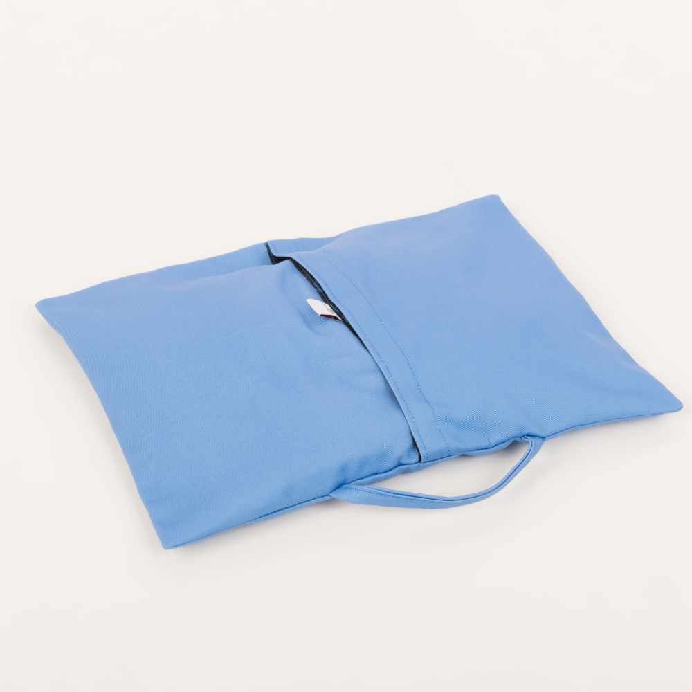 Pesa rellena con finos cuarzo, fabricada en gabardina, tela de gran resistencia, fácil de lavar ya que tiene un forro interior y una práctica apertura con velcro que permite retirar el saco de arena de cuarzo fácilmente y así lavar la funda, además contempla un mango de tela reforzado para su cómoda manipulación.