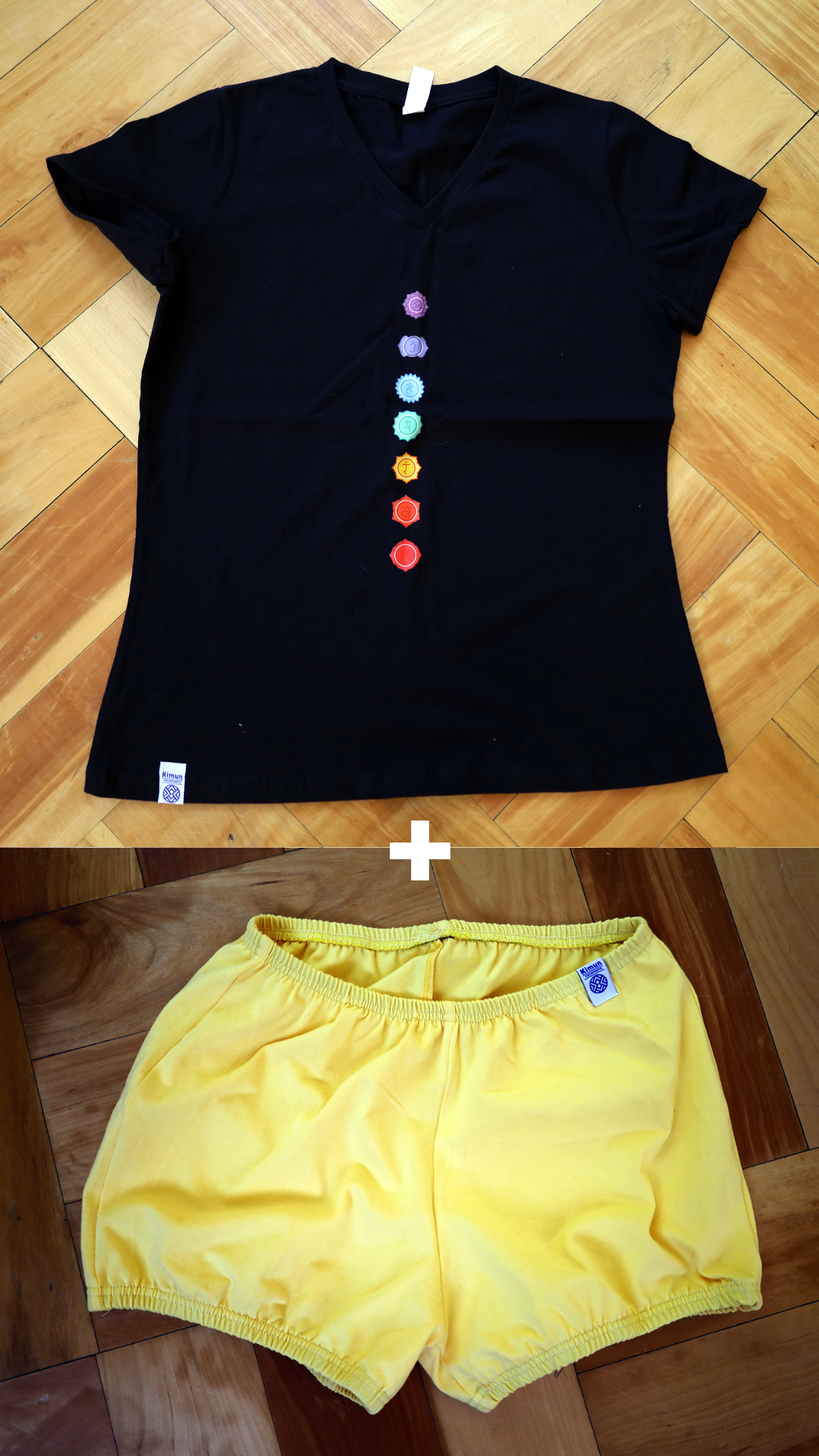 Polera de Algodón con 7 Chakras diseño exclusivo Kimun + Short Yoga 100% Algodón elasticado.