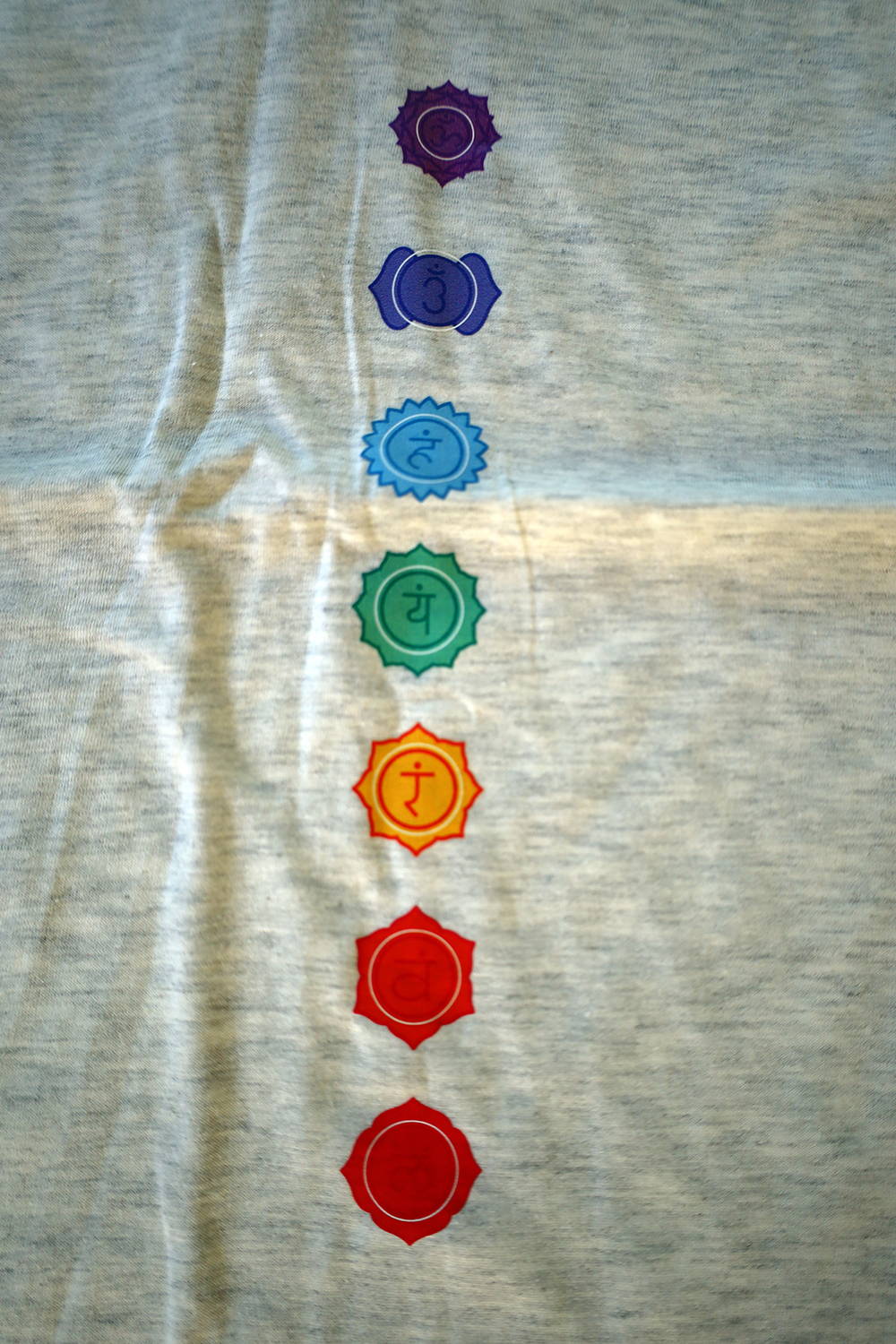 Poleras Chakras, algodón /hombre, muy cómoda para tu práctica, con  estampado de 7 chakras. Úsala también en cualquier momento. Tenemos Grafito y blanco, pero también puedes solicitarla en otro color al whatsApp.