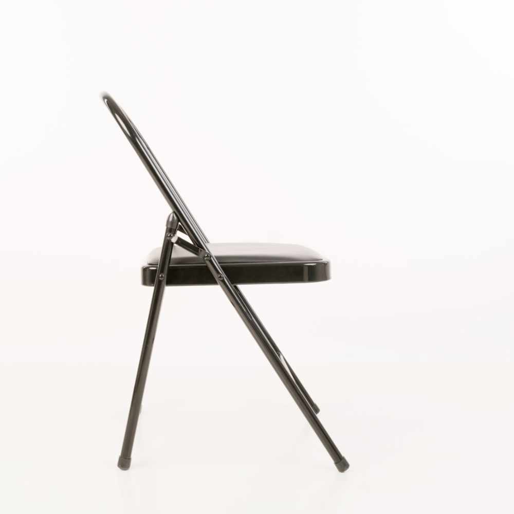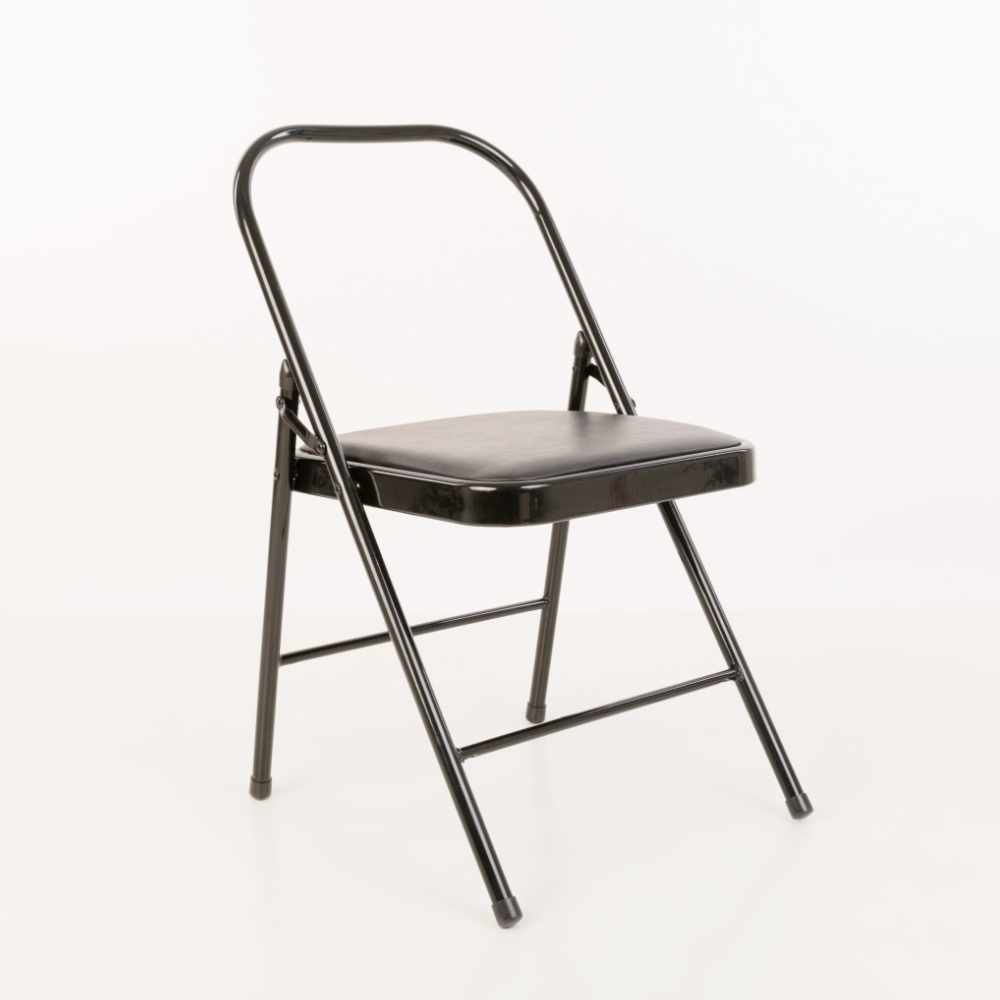 Esta silla para YOGA tiene una base acolchada y se caracteriza por su ligero peso, tiene las medidas originales para la práctica de Yoga, lineamientos del método Iyengar que se usan en India, su estructura metálica es de gran resistencia y es plegable. En color negro