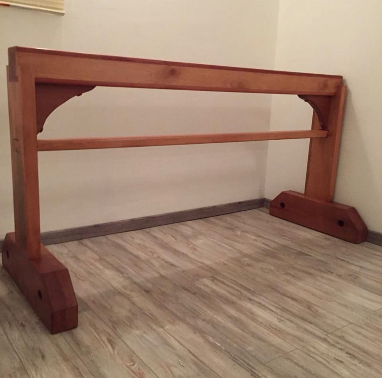 Es un caballete de madera de raulí, maravillosa estructura con finas terminaciones, muy útil para realizar el perfeccionamiento de posturas de pie, profundizar en todo tipo de asanas, y trabajar como docente en clases con embarazadas o personas con algún problema de equilibrio, en recuperación de alguna enfermedad, entre otras alternativas. Es un maravilloso prop para investigar en el arte y ciencia del yoga.